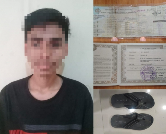 Dalam pengungkapan kasus ini, polisi turut mengamankan sejumlah barang bukti, antara lain 1 (satu) buah BPKB dan 1 (satu) lembar STNK milik korban, Rekaman CCTV di sekitar lokasi kejadian, Sepasang sandal milik pelaku yang tertinggal di TKP. Atas kejadian tersebut, korban mengalami kerugian sekitar Rp15 juta.