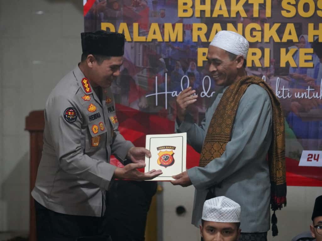 SUMEDANG - Dalam rangka memperingati Hari Ulang Tahun Humas Polri ke-74 Tahun 2025, Bidang Humas Polda Jawa Barat melaksanakan kegiatan Bhakti Sosial yang dipimpin langsung oleh Kabid Humas Polda Jabar Kombes Pol Hendra Rochmawan, S.I.K., M.H., bertempat di Pondok Pesantren Al Mubarok, Padasuka Desa Mekarsari, Kecamatan Sukasari, Kabupaten Sumedang, Jum'at (24/10/2025).