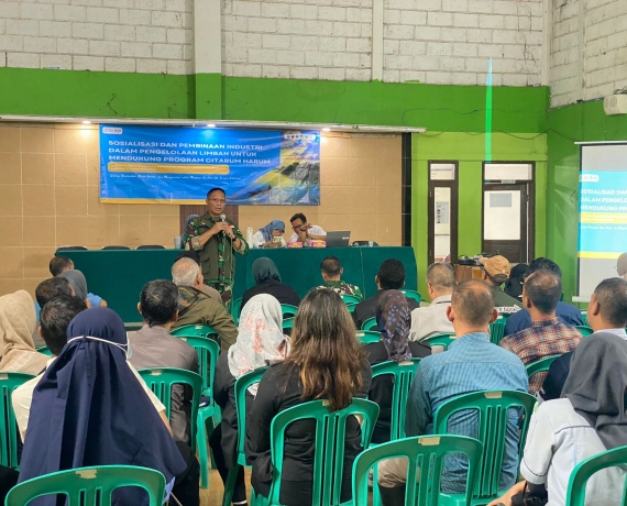 Bandung - 12 November 2025 - Dansatgas Citarum Harum, Kolonel Inf Yanto Kusno Hendarto S.H, menghadiri kegiatan sosialisasi pembinaan industri dan pengelolaan limbah di Aula Desa Sumbersari, Kecamatan Ciparay. Kegiatan ini dihadiri oleh sekitar 100 orang utusan dari berbagai pelaku usaha di wilayah sektor 1 dan 2 Satgas Citarum Harum.